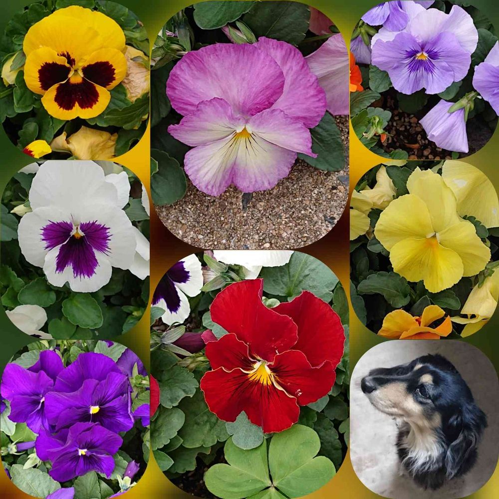 ビオラ、パンジーに囲まれて可愛いナナちゃん💗