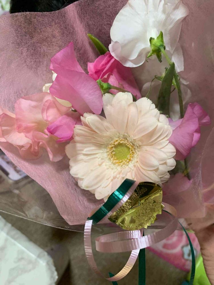 ささやかな花束を三女に渡そうとしたけど見向きもされず 友人達との写真撮影に夢中😅バァバは孫の世話と療養中の長女の対応に追われ疲れ果て孫と爆睡😭
