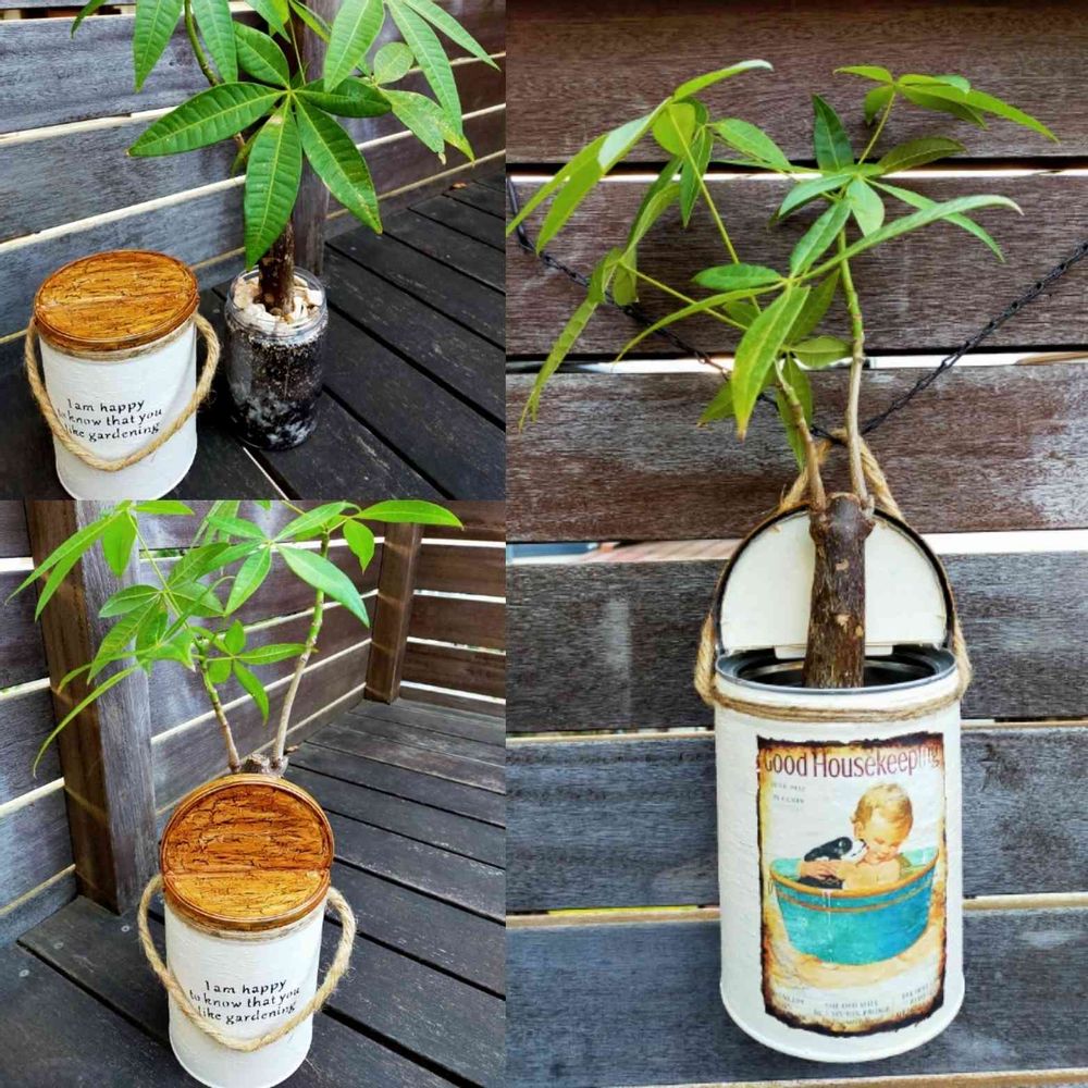 粉ミルク缶をリメイクしたポットにパキラをIN♪