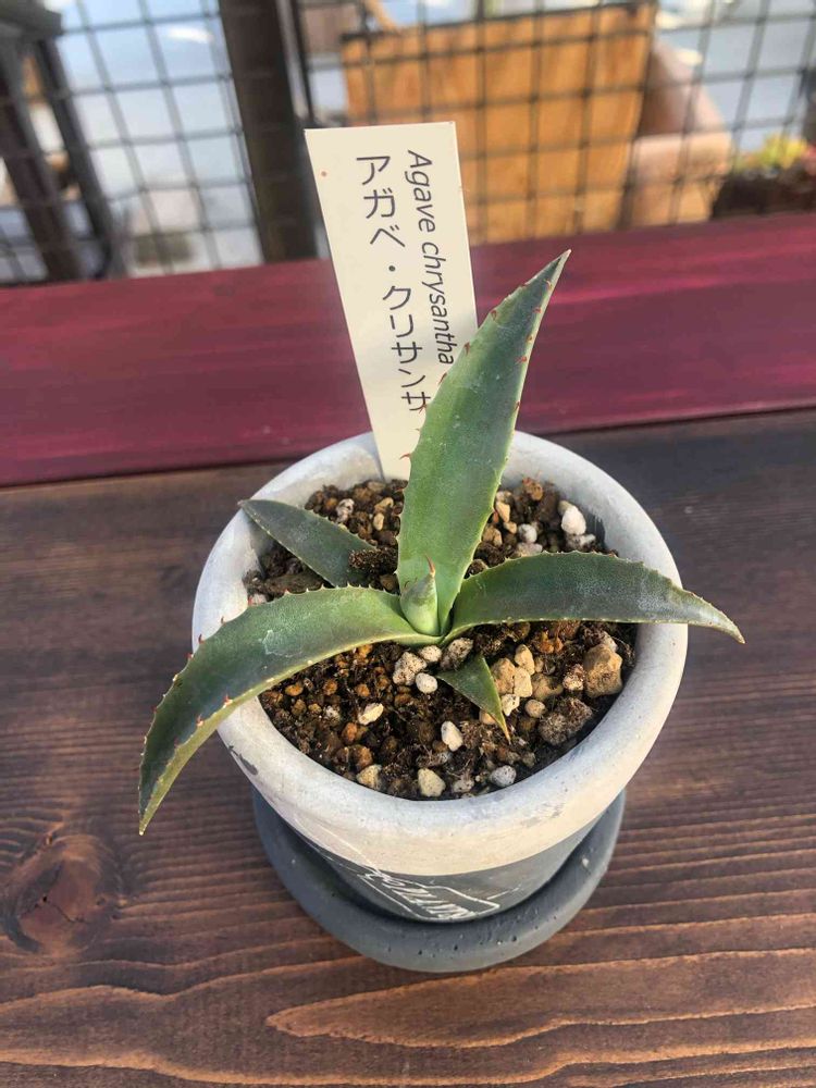 バルコニー/ベランダ,アガベ ・クリサンサ,可愛い鉢の投稿画像