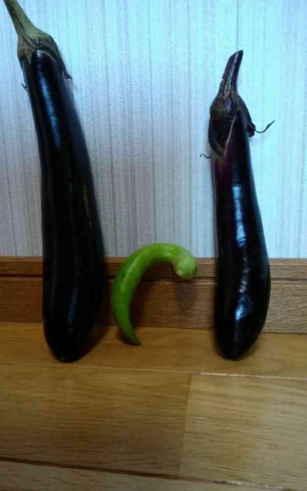 オクラだけでは、同じようなpicになるので、ナス🍆が普通だったのでこうしてみました(笑)