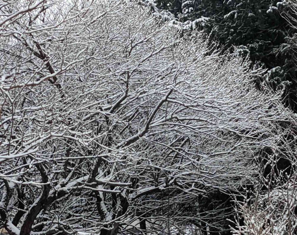 雪は夕方遅くには止んで積雪2、3cm、通路の雪掻きだけで済みました。