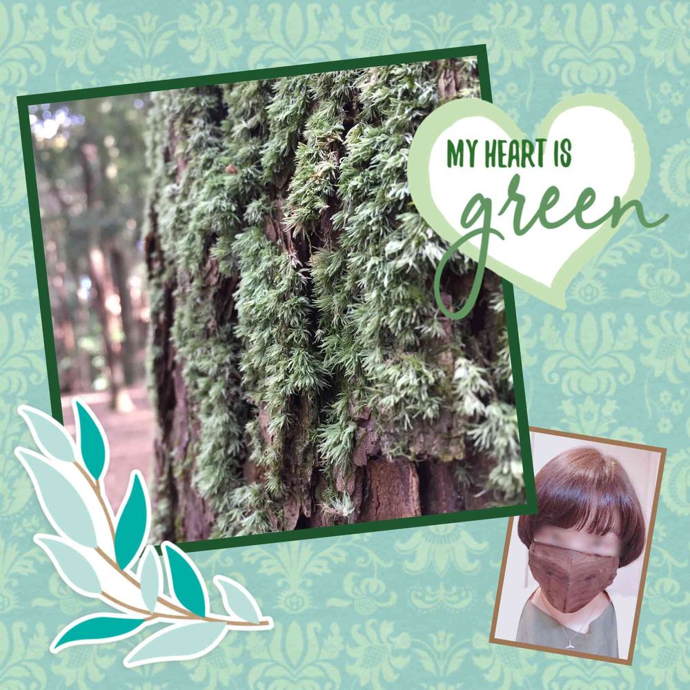 お正月明けに行ったアスレチックの森の中に生えていた綺麗なコケと、件の木目マスクです。