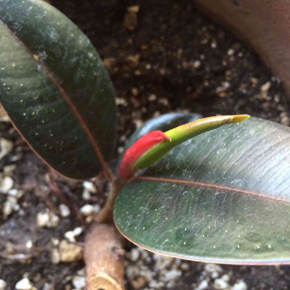 こちら霜にやられてしまったゴムの木で昨年夏に購入した時にはこの位の小さなものでしたが、少し前まで40センチくらいまで成長していたんです。