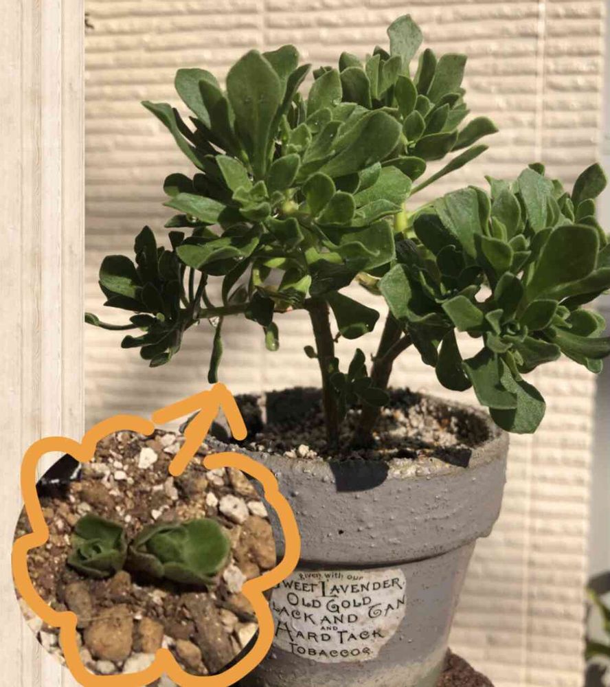 picは、1年ちょっと前ににお迎えしたチョコチップ。お迎えした時は左下↙️のカット苗で、小指の爪くらい小さかったので、育つか心配でしたが、無事に大きくなってくれて嬉しい😊♬