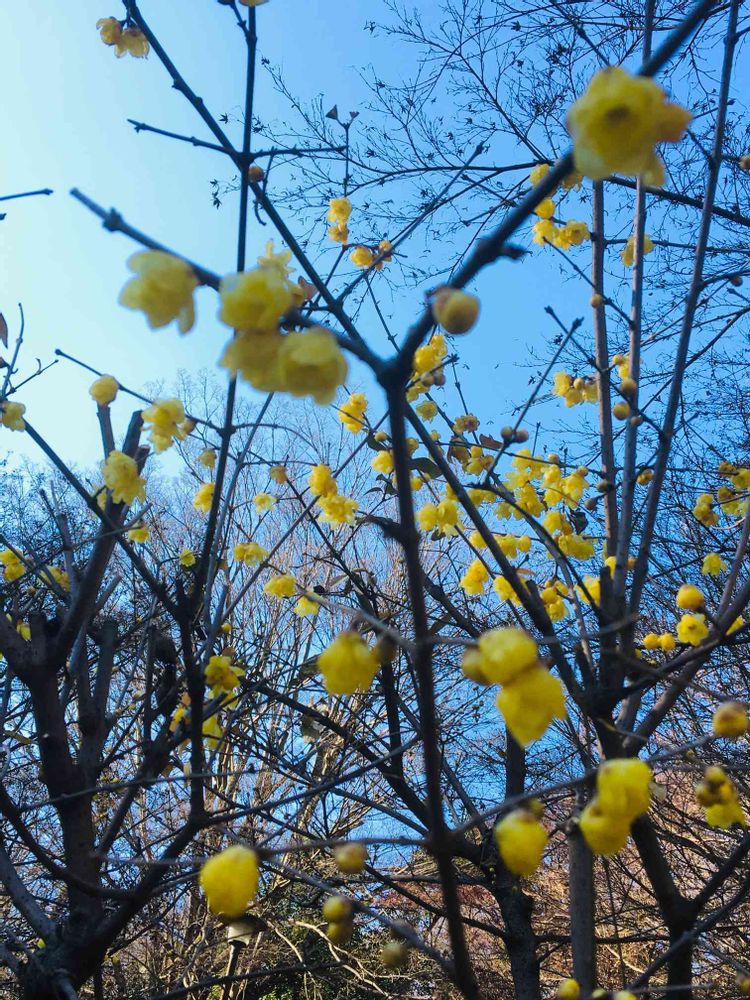 紅梅の咲き具合を散歩しながら🚶🏻♀️見に行ったが、未だ蕾。でも歩いた成果が蝋梅で報われた感じ💕この公園で初めてお目にかかった🌼