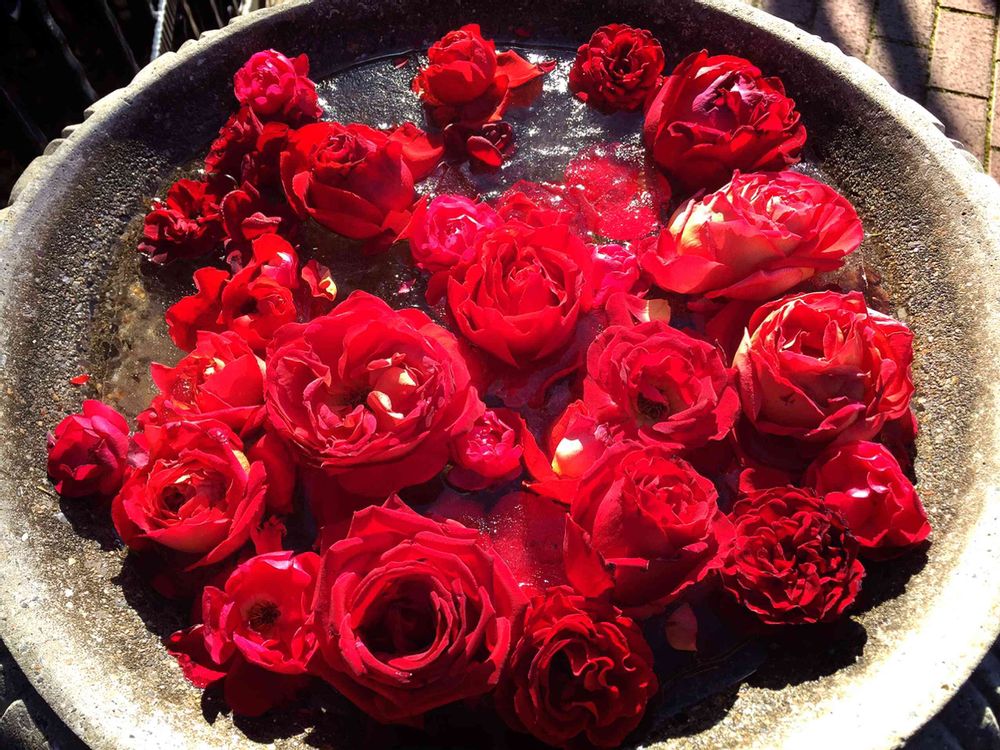 バードバスに浮かべられた薔薇の🌹の花が凍るのもきっとキラキラ素敵なんでしょうね💖