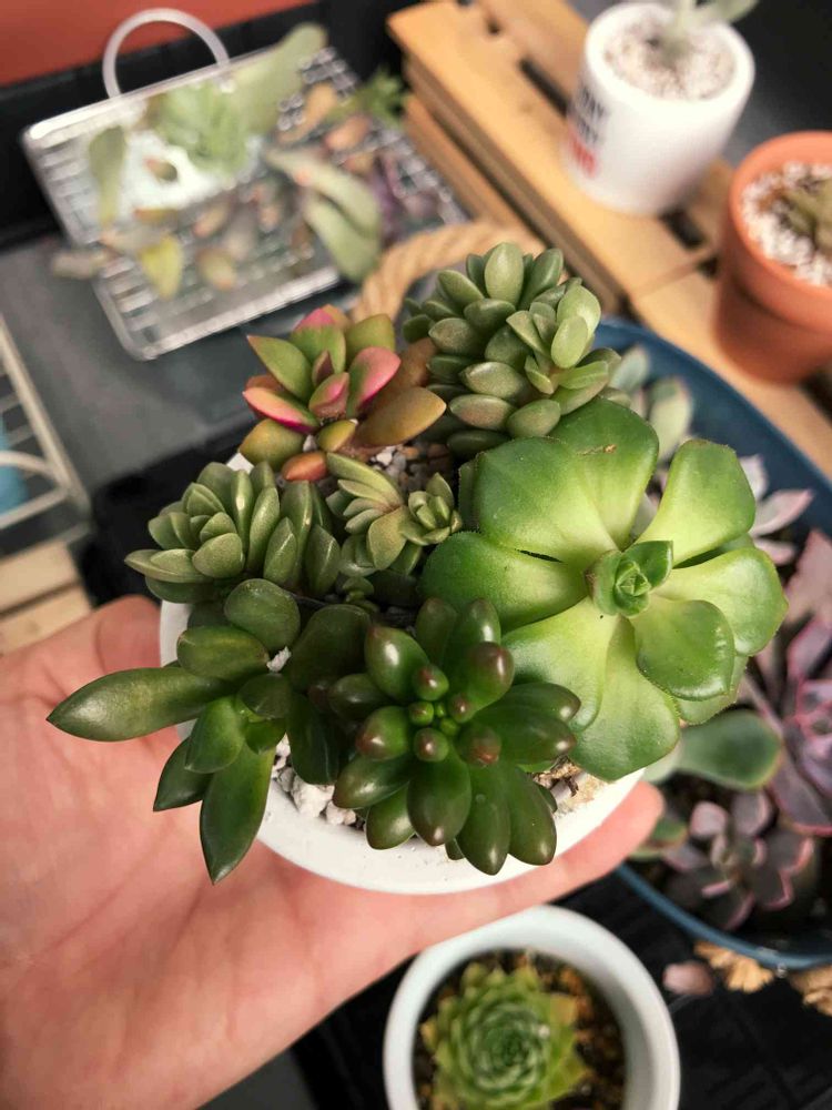 鉢が足らず、一鉢に押し込んだ多肉ちゃん達❤️