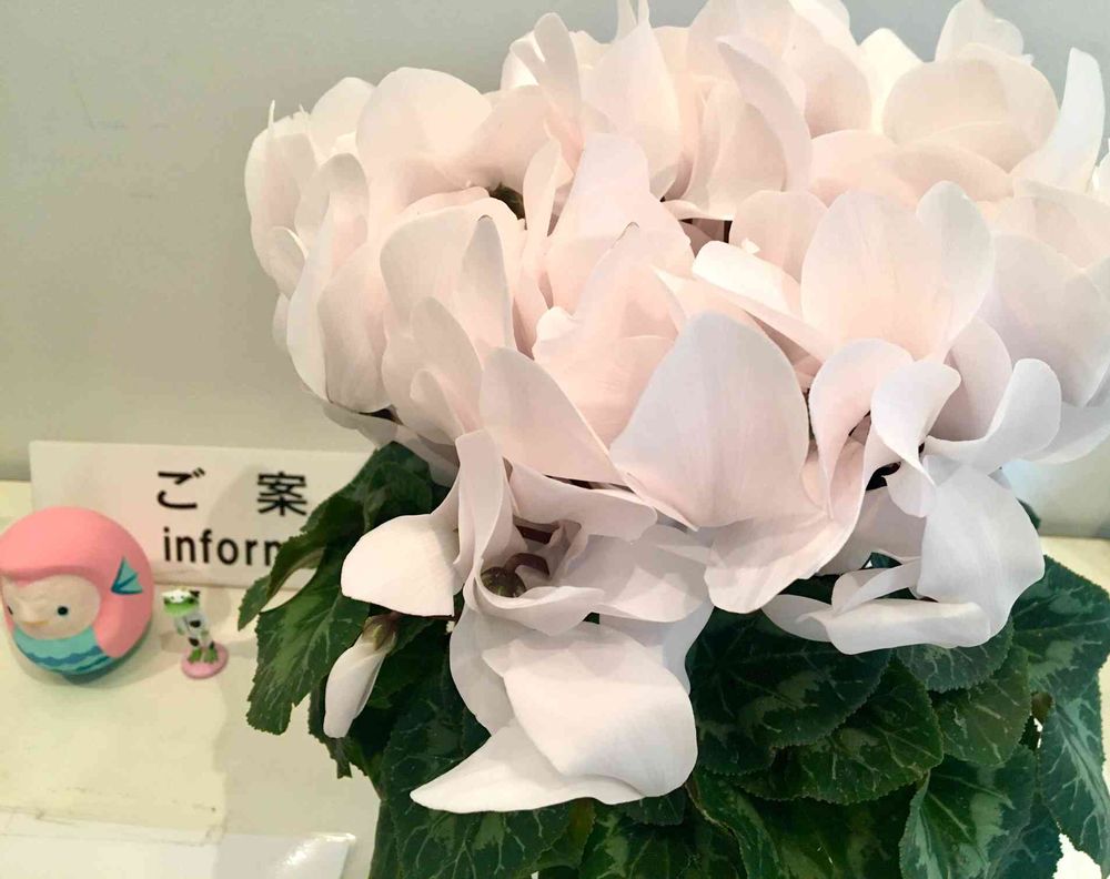 壁もテーブルも白いので心配したけど淡い淡いピンクのシクラメン😍