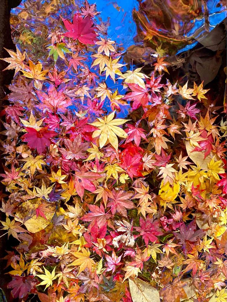 水に浮かんだ 色とりどりのもみじ🍁✨