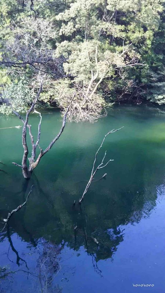 水面に映る瑠璃空が