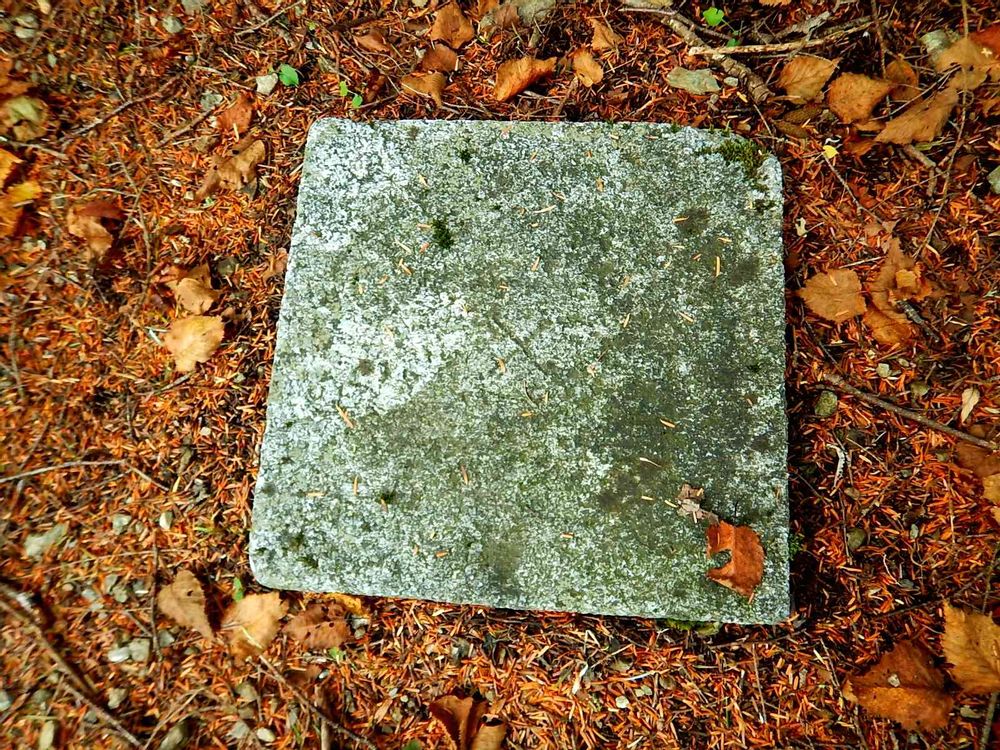 先程の三角点の写真の隣には、ご覧のような正方形の石標が埋設されていました。葉のサイズ感がつかみにくいかもですが、石標は一辺が30cm角ほどです。
