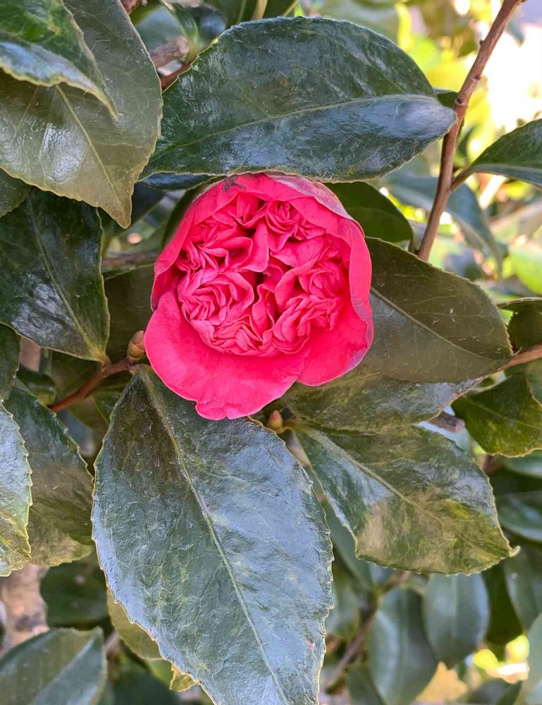 公園のその椿が咲くの待っていますがまだ蕾は固そうです。遅咲きかな😅