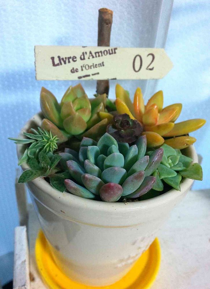 鉢の下の黄色い受け皿に合う色合いにまとめてみました。