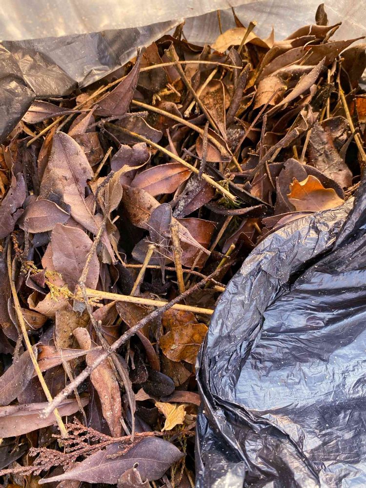 袋に落ち葉と水とちょっとだけ微塵と米糠をいれて一週間目です
