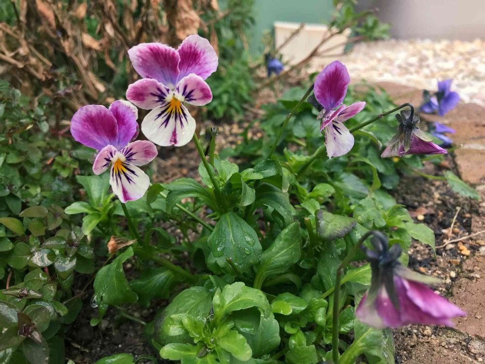 うさ耳ビオラちゃん元気!隣に植えたパンジービオラはイマイチ花付き悪い…栄養不足なのかなぁ🤔