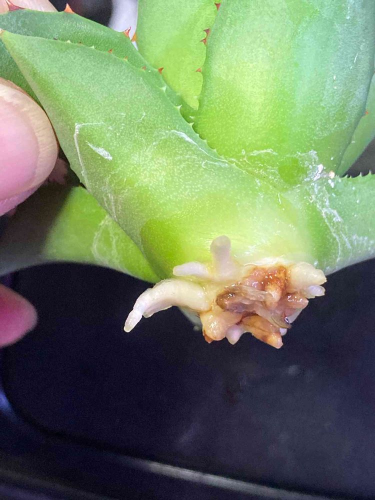 12日に投稿したアガベ・フィリフェラ✖️イシスメンシスのミダレユキの発根写真ですが2日後の今日根の伸び具合を確認したら