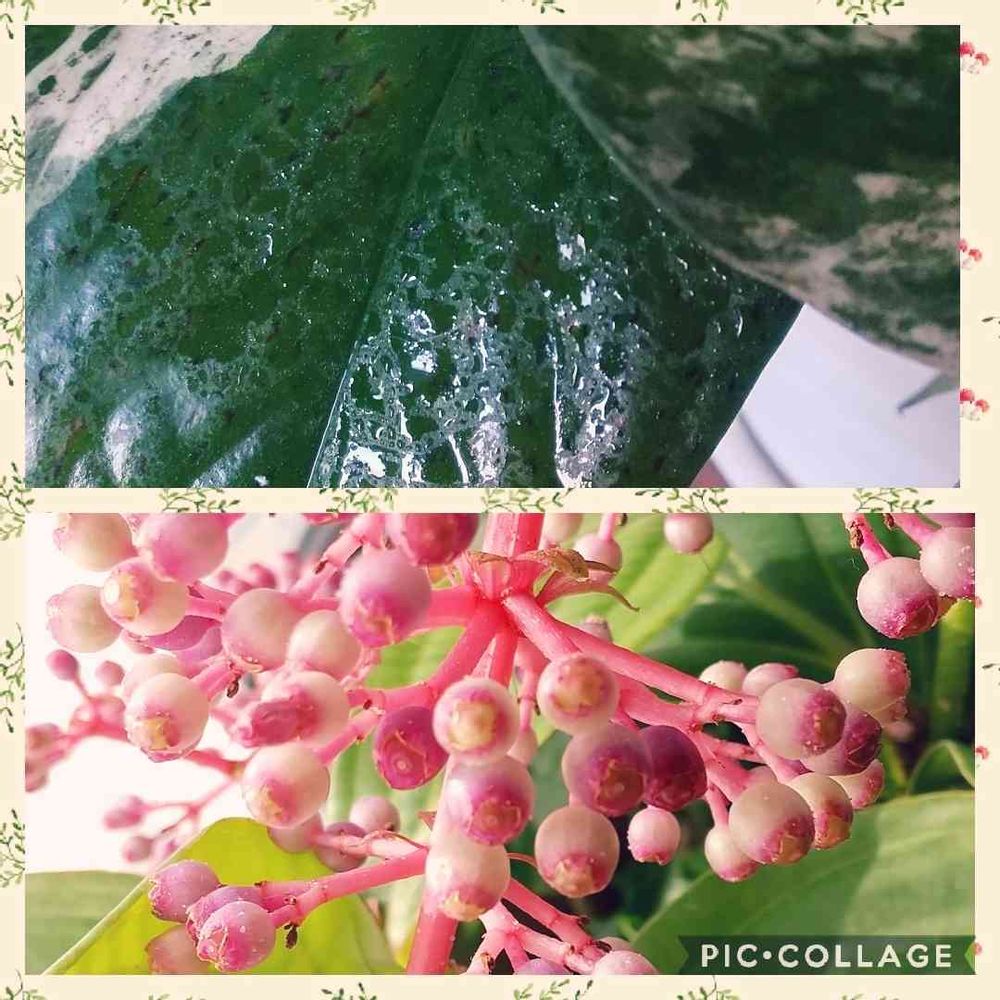 ㊦はメディニラスペキオサの実。いつチョッキン✂️したらいいかわからない🙄もっと紫色になるみたい。