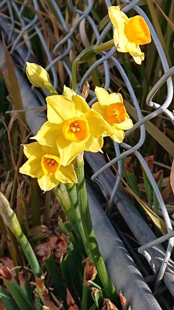 ビタミンカラーの水仙いいですね☺️👍 そして金網越しのたくましさ 健気です‼️😄