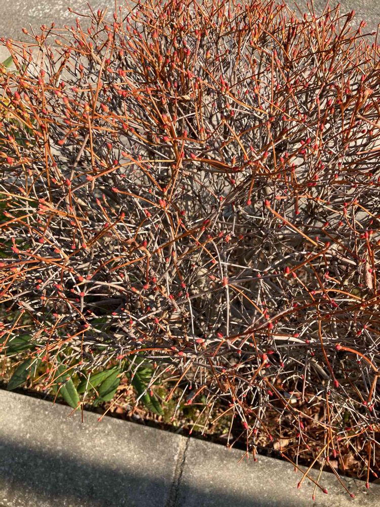 冬のドウダンツツジの冬芽が赤く色づいて可愛いですね。
