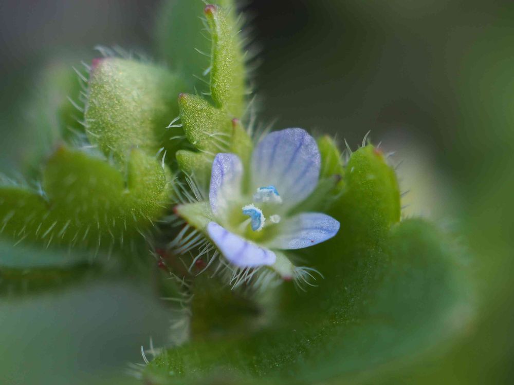 日当たりのいい畑地で小さなお花を発見、最初はオオイヌノフグリが咲き始めたと思っていた。