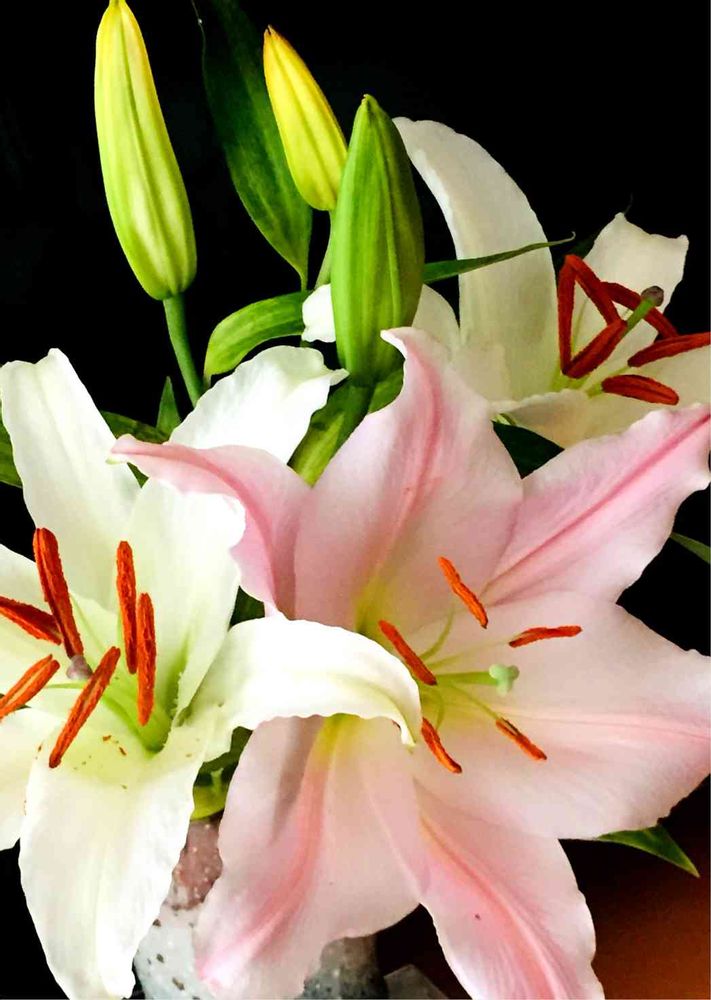 お正月用に生けたピンクの百合の最後の蕾&買い足した白い蕾も開きました🌼まだ咲きますね!