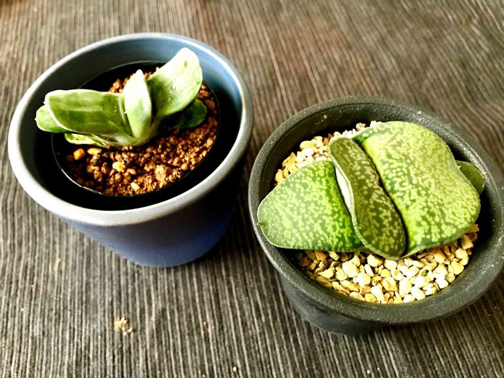 先日連れて帰った、「ガステリア恐竜」さん(右下)。
