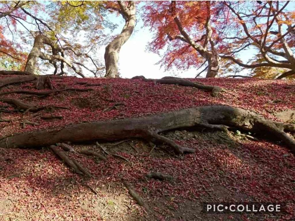 落葉した紅葉と力強く這った根っこに思わずパチリ‼️