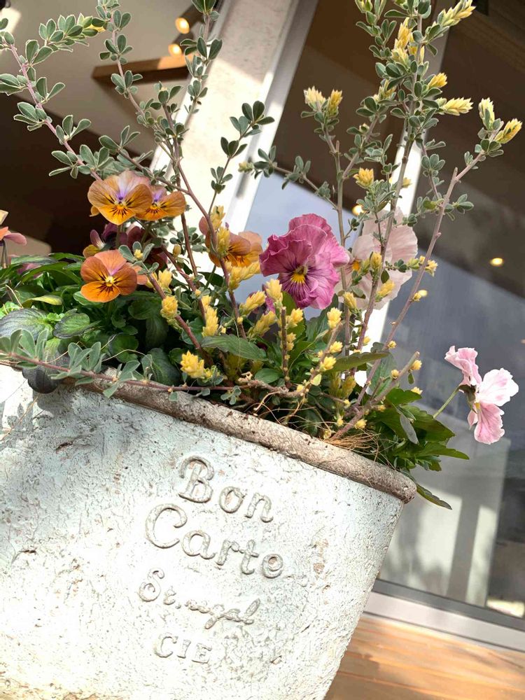 ロータスブリムストーン主役のパンジービオラが脇役みたいになって、良く言えばナチュラル感⁉️
