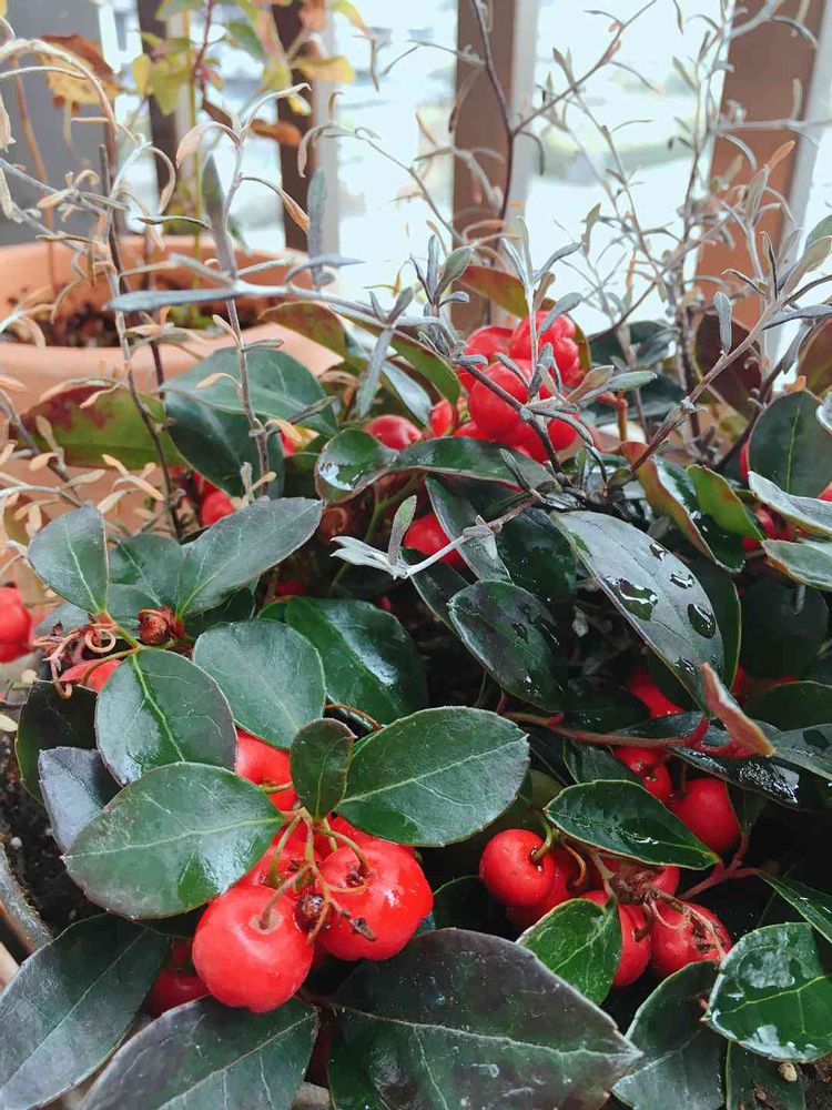 また寒くなるみたい。チェッカーベリーと一緒に植えたワイヤープランツなんだか枯れ気味?