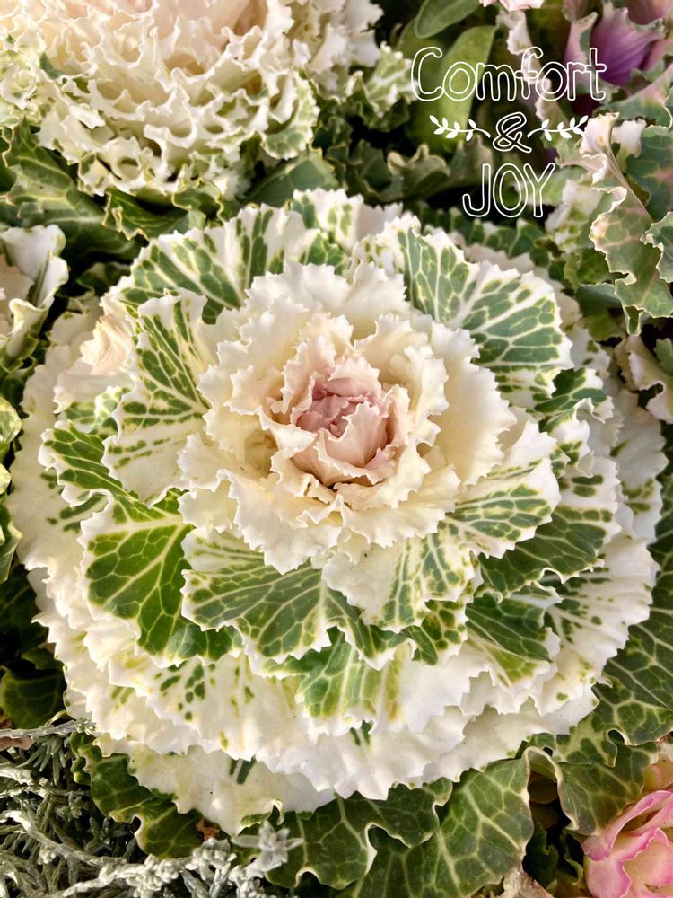 寄せ植えの中のお気に入りのハボタンちゃんで