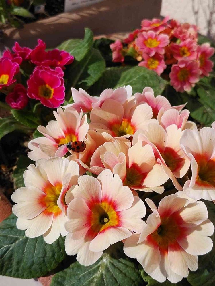 我が家のいちばん咲き誇っているプリムラジュリアンにご来客様~😆いらっしゃ~い💕