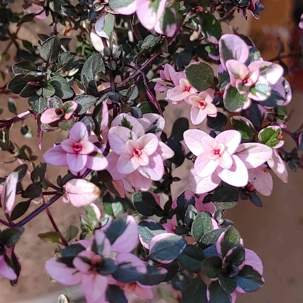 タイムの葉がピンク色に色付いて、花は咲くのかわかりませんが?12月に同じタイムですが、投稿picが 寒くなり可愛いピンク色になりました。💕