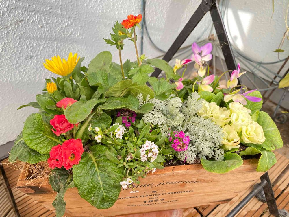 昨晩、高知の見元園芸さんから花苗が届きましたので早速、寄植えにしました❣️