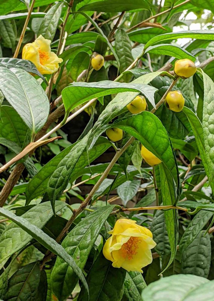 年末訪れた公園の温室に咲いていた珍しい黄色の椿の「金花茶」をかわりに…