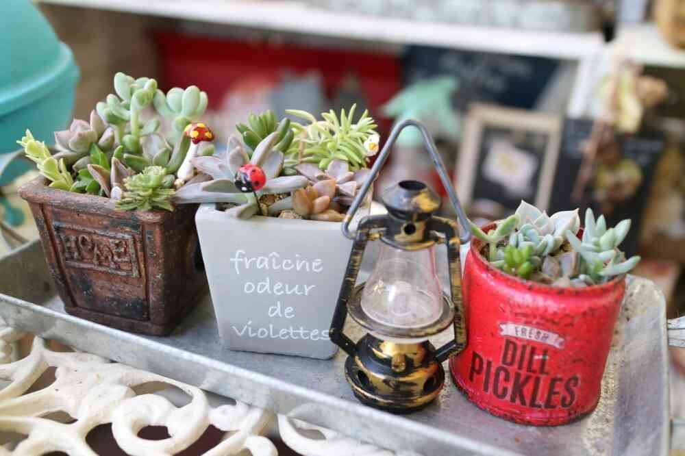 セリアのミニ鉢とリメ缶に、多肉ちゃん寄せました❗