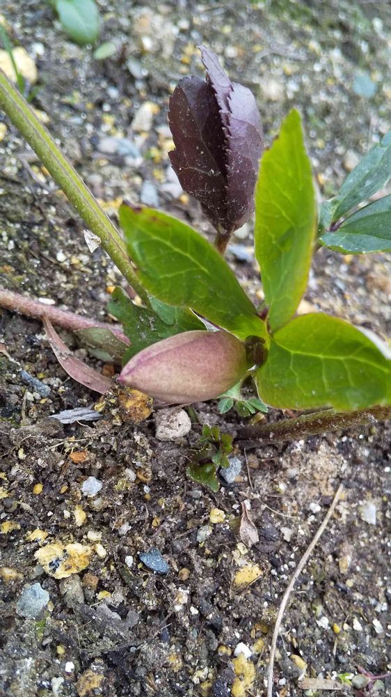 まだまだ、小さいクリスマスローズの苗から、小さな花芽が出て来ました~😊