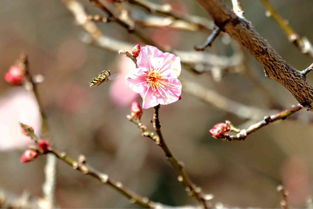 昨日今日の 春の暖かさに ウメが咲き 花の香りに 虫も 動き出したようです