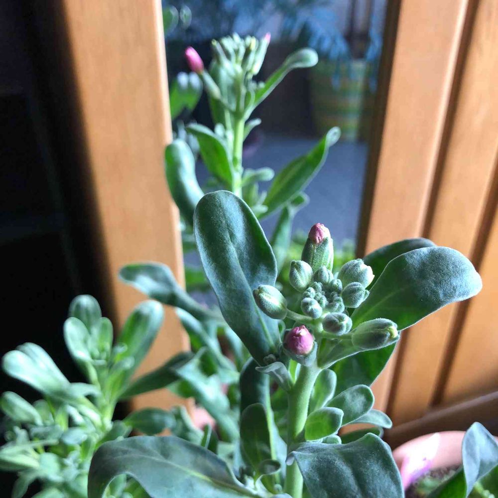 寒さでどのお花もまともに成長しません、このストックは10月の終わり頃から育ててやっとこのくらいの蕾が、咲くまで長かったです〜玄関に入れたり出したり手がかかります💦