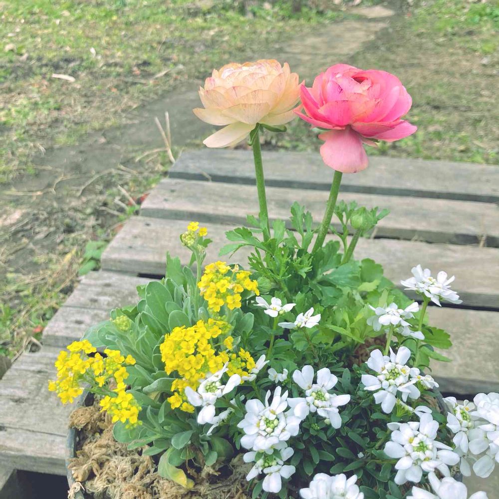 ひとつの苗から違う色のお花を咲かせてるラナンキュラス💕