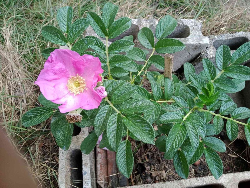 タイに引っ越した当初、まさかタイにもあるとは思っていなかったハマナスです。久しぶりに園芸市場で見掛け、パパイヤが枯れた後、場所がポッカリ開いていたので植え付けました。