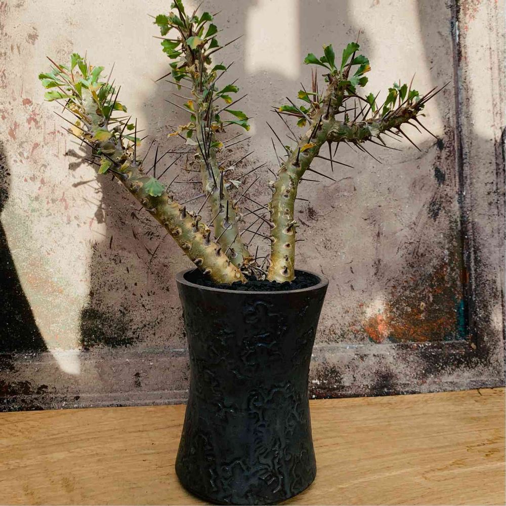 根が下に伸びるタイプのコーデックス多いのにですよね(笑)。鶴仙園で購入されたのですね。たまに行くと、面白い鉢ありますよね。