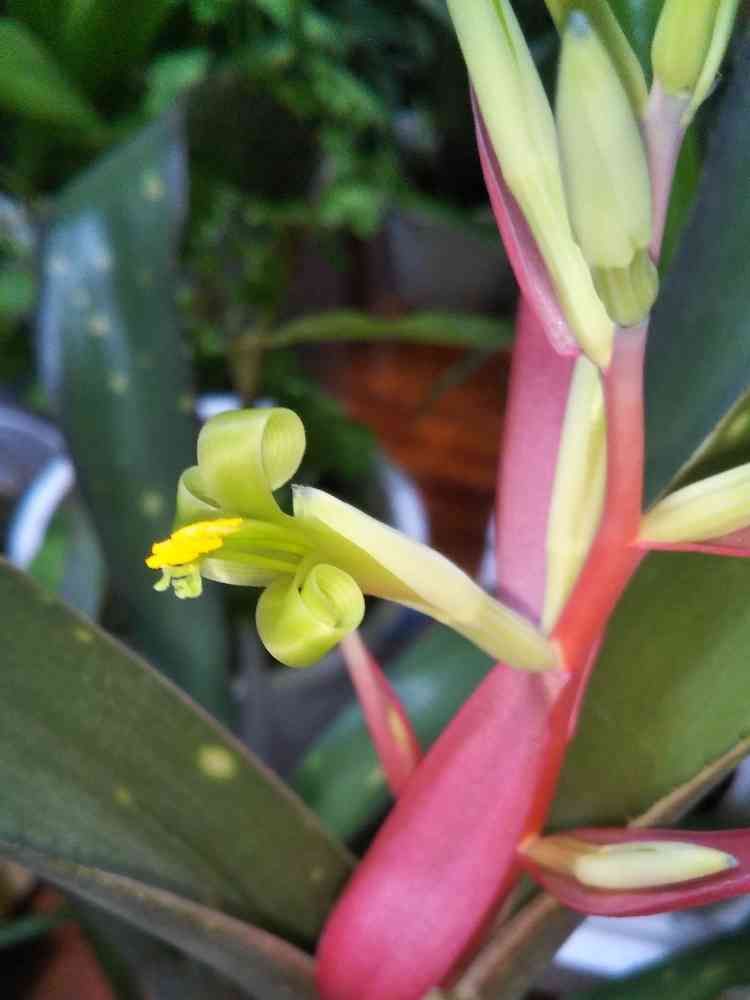 3年ほど前、日本ブロメリア協会総会の折に頂いたビルベルギアが初開花しました。