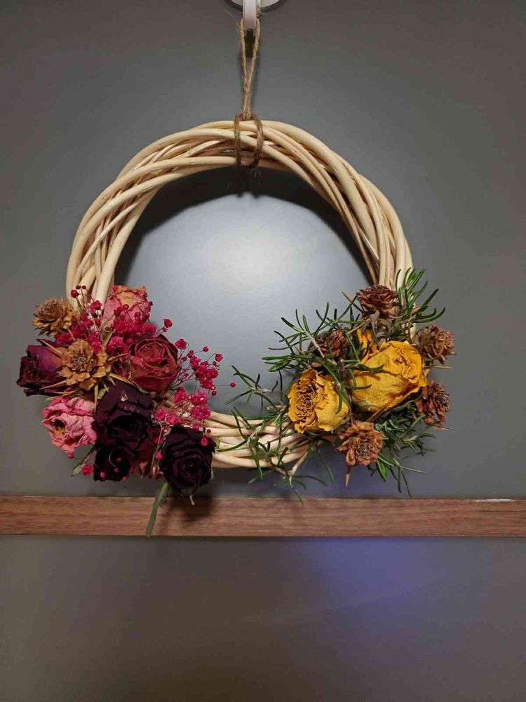 家にあったドライフラワーと花壇に植えてるローズマリーを使って🤗