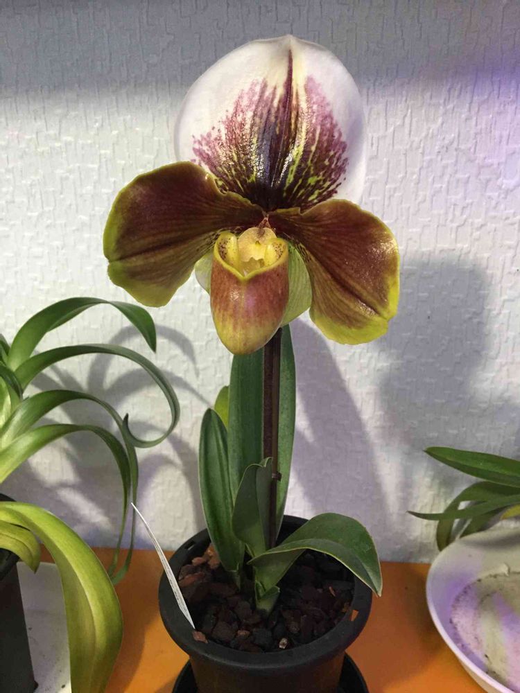 頂いたPaph. Winston Churchill Redoutable × Enzan Nick “MOL-2”です。大きな花🌸に感動です😆💕