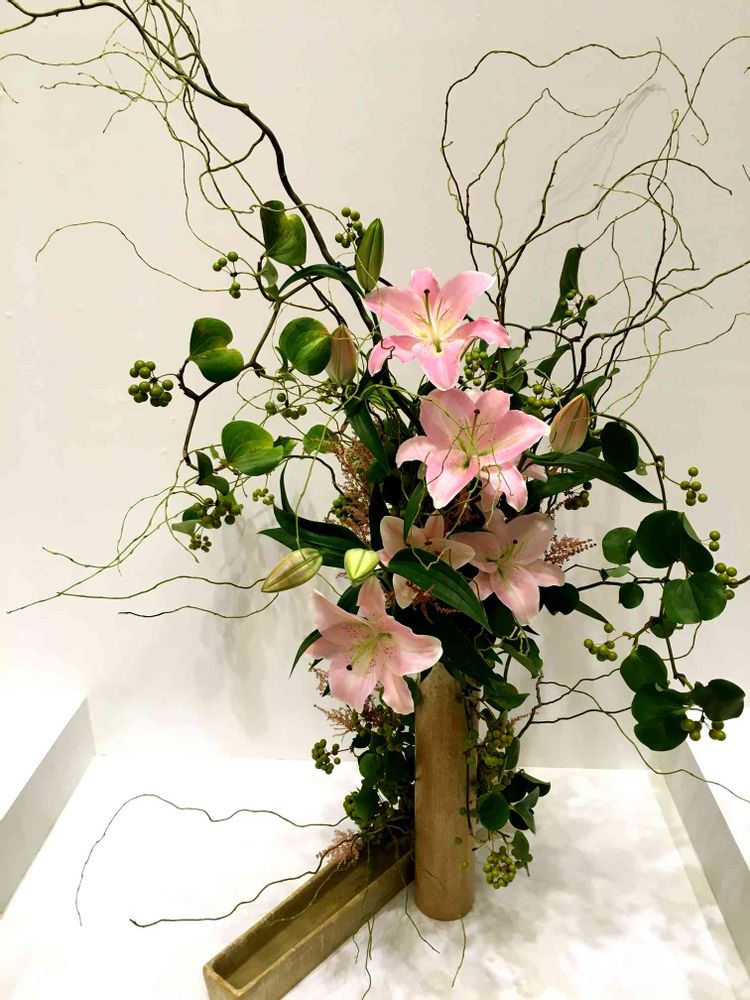 フラワーアレンジメントも華やかでウキウキしますが、いけばなは枝もの流れ、空間の使い方、花器などしみじみと見惚れてしまいます😍