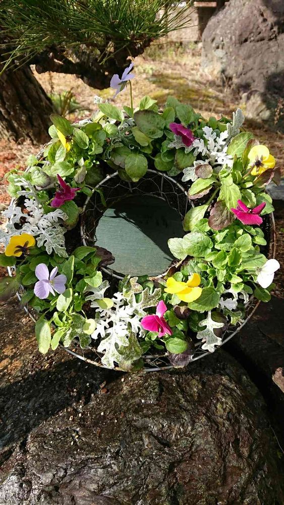 ビオラとシロタエギクの寄せ植え