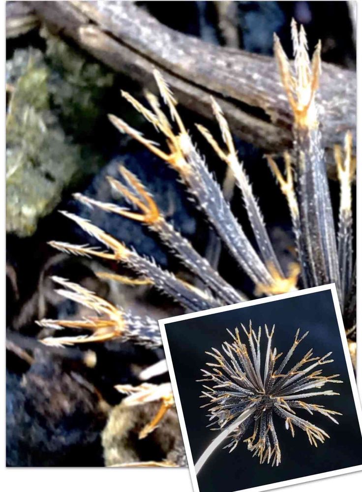この写真でわかったのだけど、種の部分の棘は上向き。冠毛の棘は下向きですね。