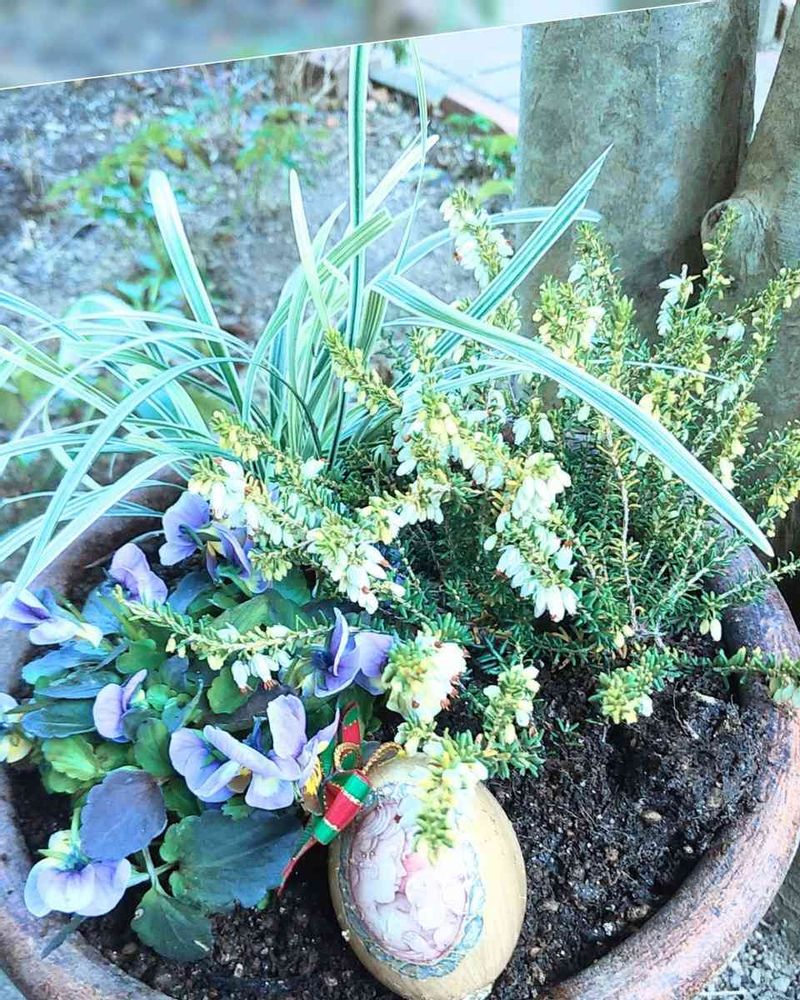 お花も青と白でまとめられていて、素敵な寄せ植え&エンジェルですね💕