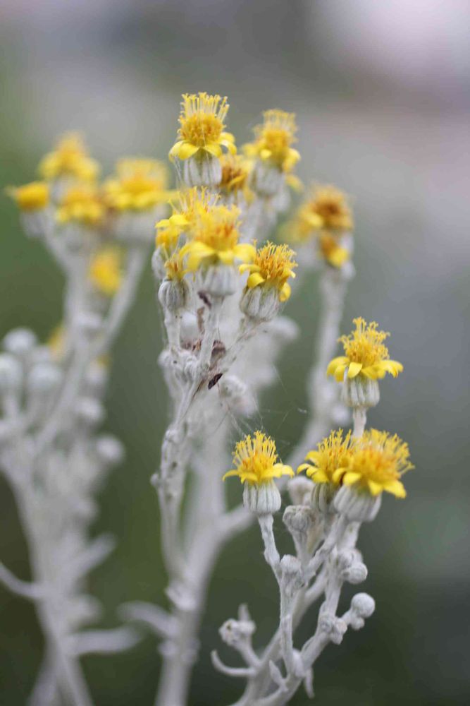 シルバーリーフだとおもっていたので花が咲くとは。確かに名前はキクですね。納得しました。
